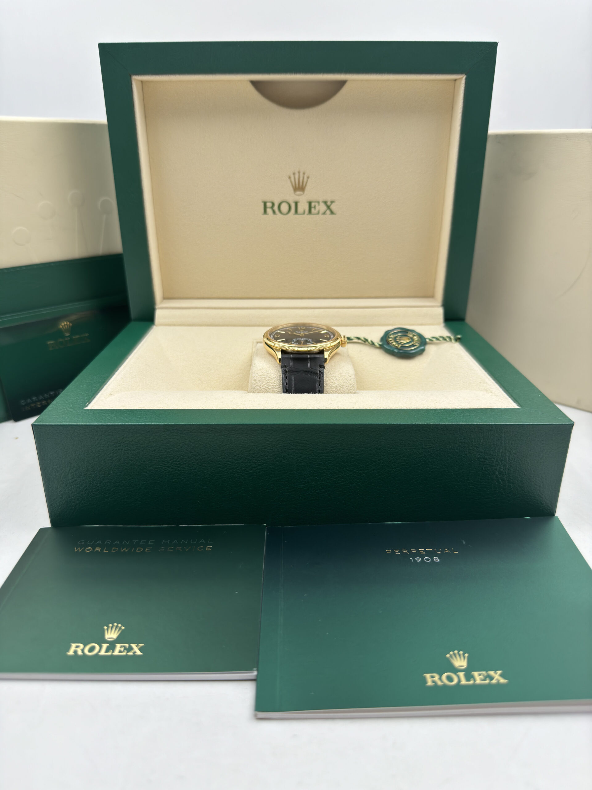 The Rolex Perpetual 1908 Ref. 52508 with a black dial is a testament to Rolex’s commitment to understated elegance and refined horology. This timepiece embodies the brand’s pursuit of perfection, offering a classic aesthetic with contemporary precision.