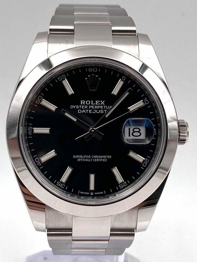 Introducing the Rolex Datejust 41 126300 (Year: 2024) – a testament to timeless design and precision. This piece features a black dial, steel bracelet, and 41 mm steel case, making it a statement piece that effortlessly captures attention.