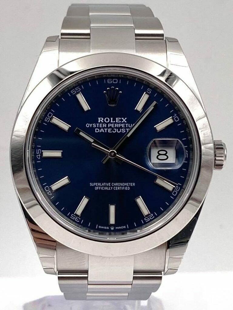 Introducing the Rolex Datejust 41 126300 (Year: 2024) – a testament to timeless design and precision. This piece features a blue dial, steel bracelet, and 41 mm steel case, making it a statement piece that effortlessly captures attention.