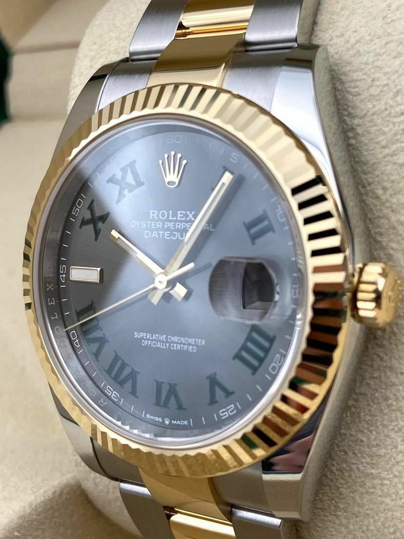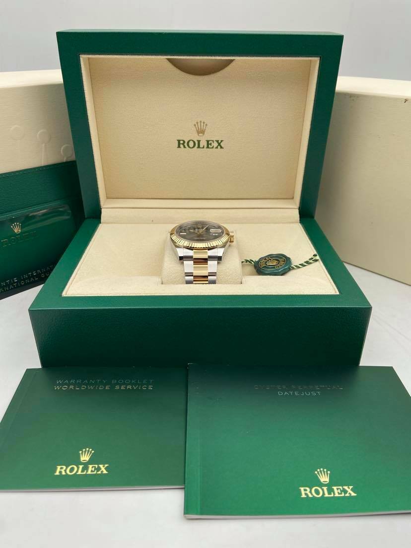 Introducing the Rolex Datejust 41 126333 (Year: 2024) – a testament to timeless design and precision. This piece features a grey dial, two tone yellow gold/stainless steel bracelet, and 41 mm steel case, making it a statement piece that effortlessly captures attention.