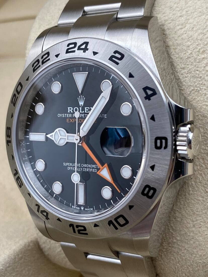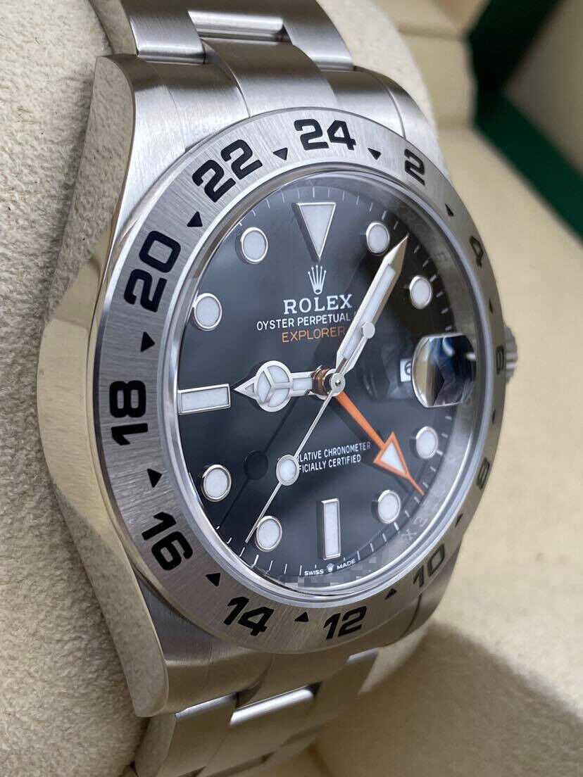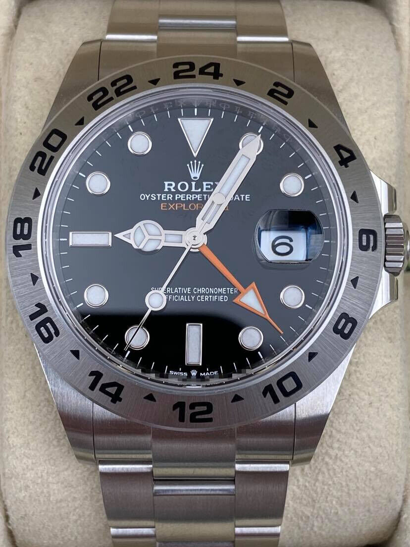 Introducing the Rolex Explorer II 226570 (Year: 2024) – a testament to timeless design and precision. This piece features a black dial, steel bracelet, and 42 mm steel case, making it a statement piece that effortlessly captures attention.