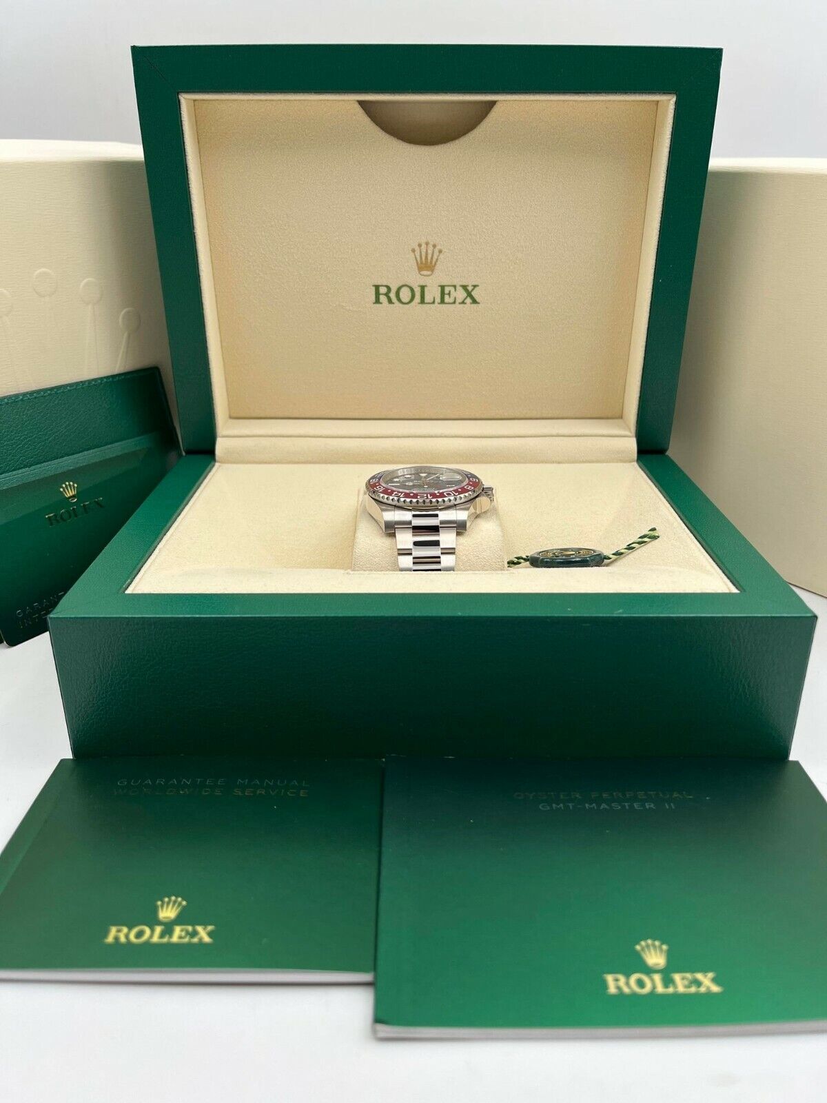 Introducing the Rolex GMT Master II 126719BLRO (Year: 2024) – a testament to timeless design and precision. This piece features a blue dial, white gold bracelet, and 40 mm white gold case, making it a statement piece that effortlessly captures attention.