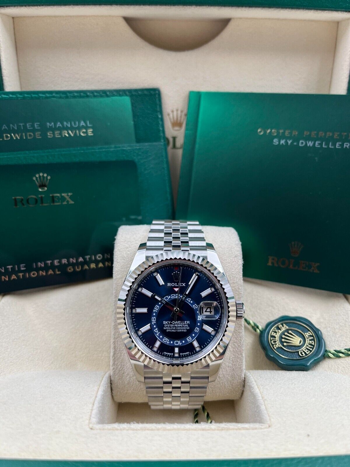 Introducing the Rolex Sky-Dweller 336934 (Year: 2024) – a testament to timeless design and precision. This piece features a blue dial, stainless steel bracelet, and 42 mm steel case, making it a statement piece that effortlessly captures attention.