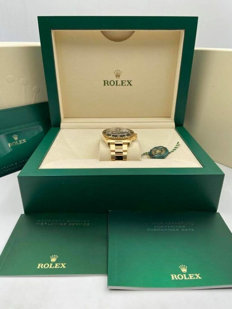 Introducing the Rolex Submariner Date 126618LN (Year: 2023) – a testament to timeless design and precision. This piece features a black dial, yellow gold bracelet, and 41 mm yellow gold case, making it a statement piece that effortlessly captures attention.